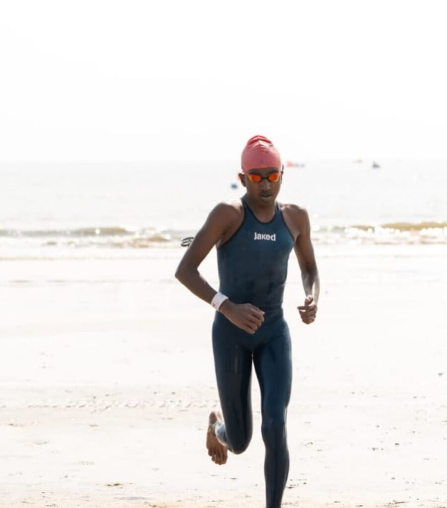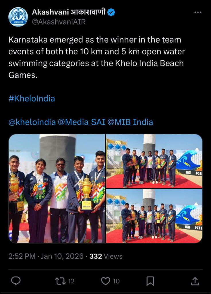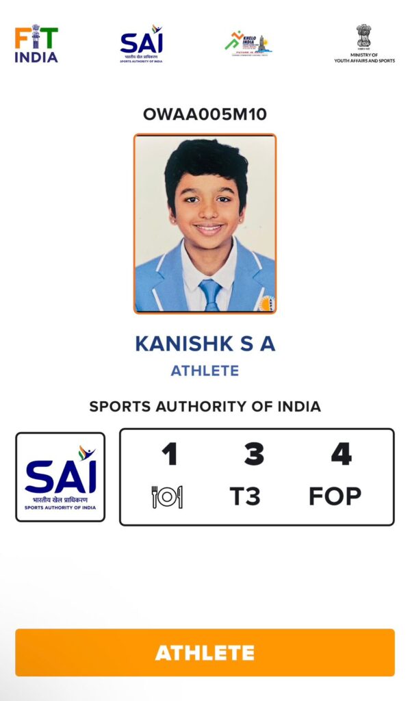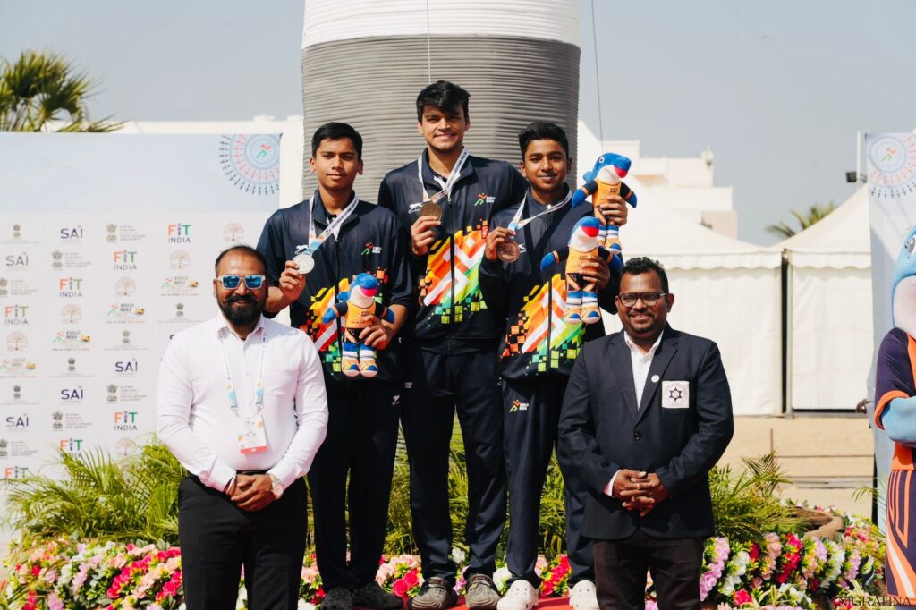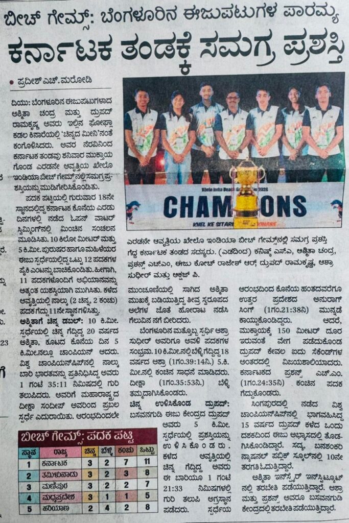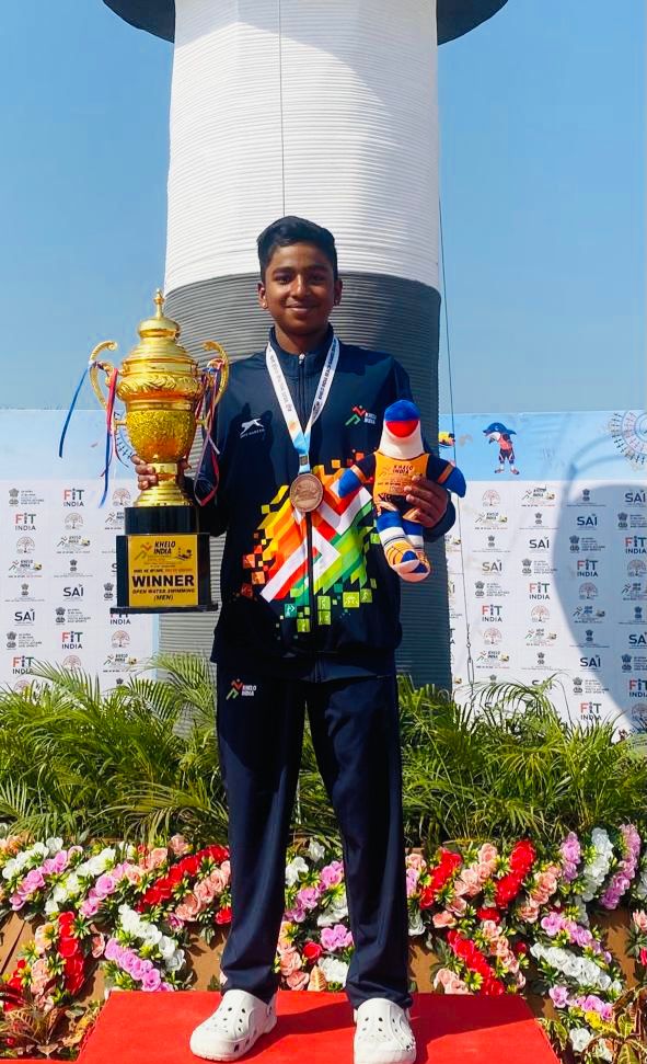 Kanishk SA, from Karnataka, participated in 10 km open water swimming competition and finished with the timings of 2:41:51 (2 hours 41 minutes 51 seconds) and won bronze medal