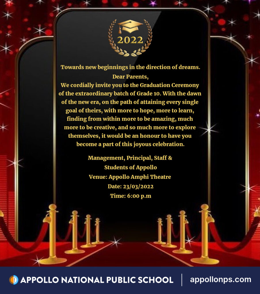Kindly confirm your availability through the Google form uploaded in your wards Classroom.  Only parents and your ward are invited for the Graduation Ceremony.  WE look forward to your presence at the event.